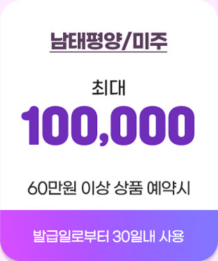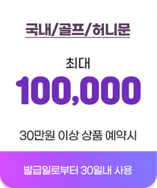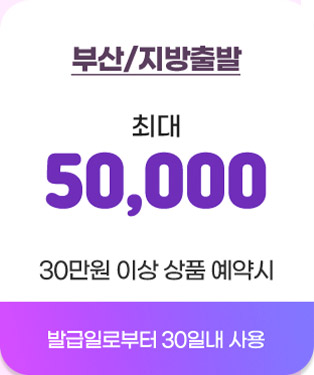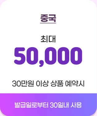 - 본 쿠폰은 예약 상품 결제시에만 사용 가능하며, 쿠폰 소지자 본인 외의 결제 및 취소료, 기타 다른 용도로 사용은 불가합니다.