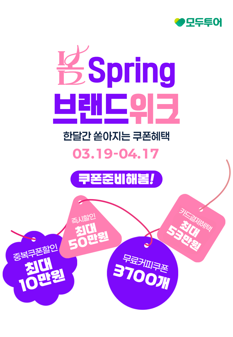 - 본 쿠폰은 모두투어 해외여행/국내여행 일반쿠폰과 중복사용이 가능한 중복할인쿠폰입니다.
